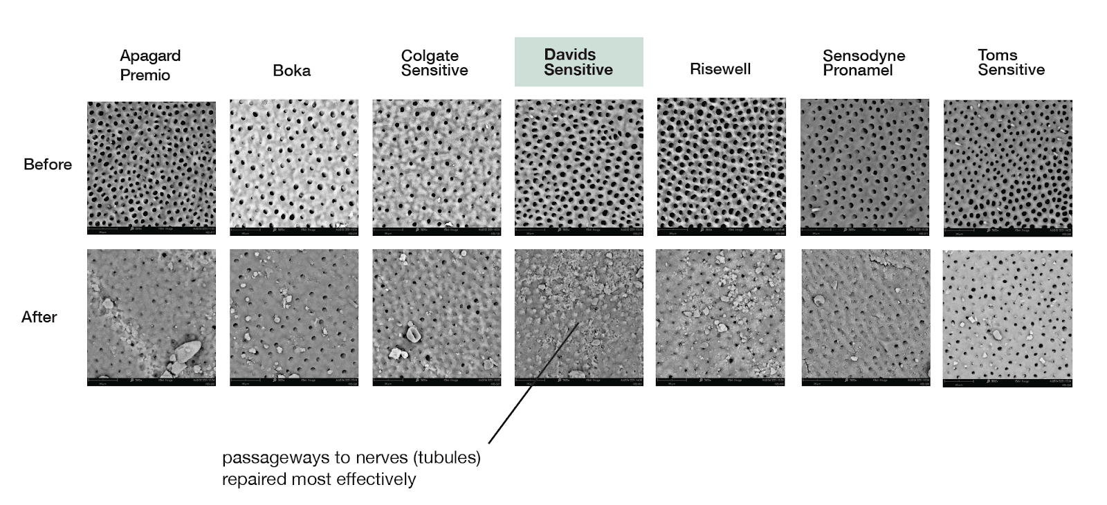 All numerical and photo evidence revealed that Hydroxi™ outperforms the competition, blocking exposed tubules better than the rest. Check out the photo evidence below!